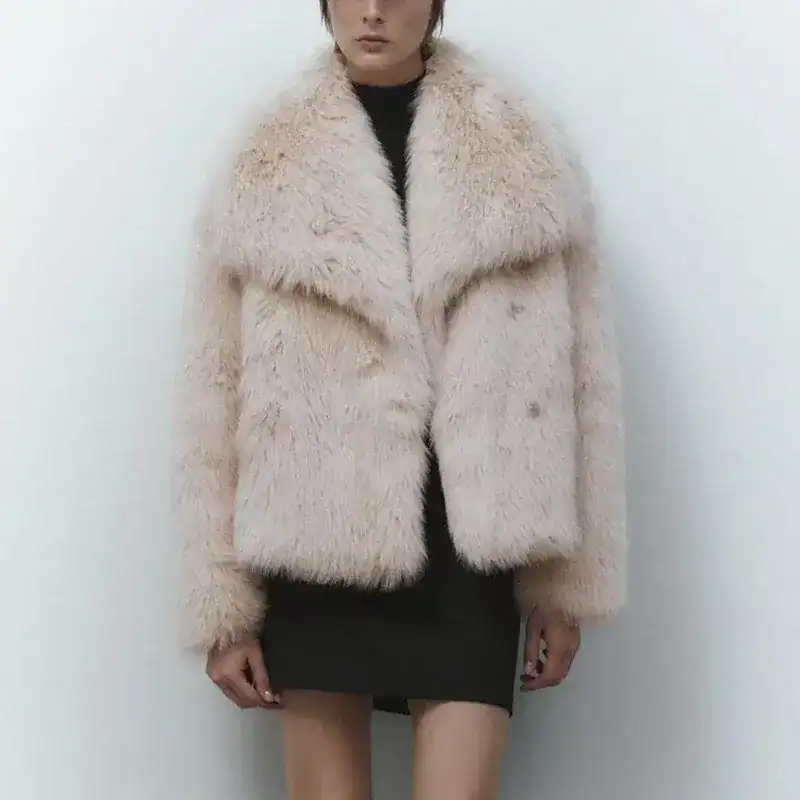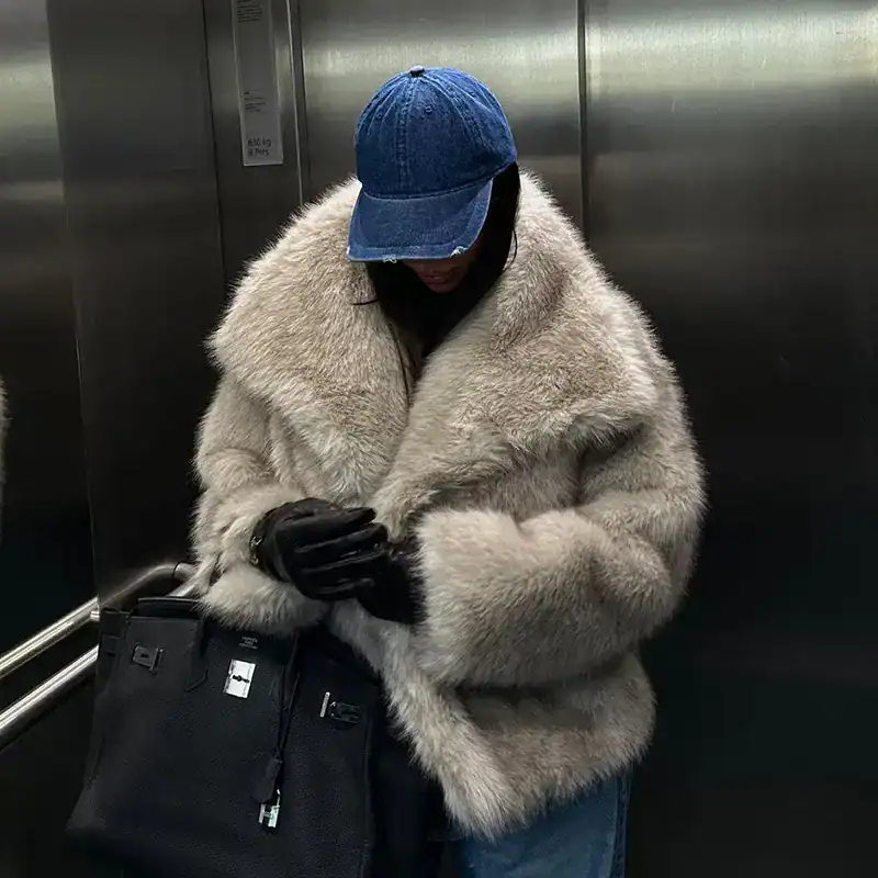 Shop the 2026 Winter Gradient Fluffy Fur Coat at Thrive. This high-street luxury faux fox fur jacket features a big collar and bat sleeves. Stay warm in style!